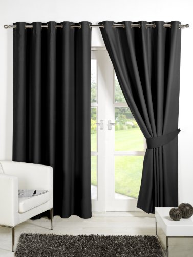 Pair of BLACK 46" Width x 72" Drop , Supersoft Thermal Blackout Curtains EYELET / RING TOP Readymade Bedroom Curtain Inc FREE Pair of Tie Backs, 'Winter Warm but Summer Cool' by VICEROYBEDDING